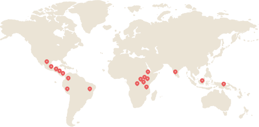 Coffee is made from the beans in coffee cherries which are grown in the “Bean Bel” - 20 degrees either side of the Equator. The bean belt includes countries like Colombia, Brazil, Indonesia, India, Kenya, El Salvador, Nicaragua, Tanzania, Mexico. Coffee beans are harvested from the coffee trees as ripe cherries. Then, they go through different processing methods to extract the coffee beans.